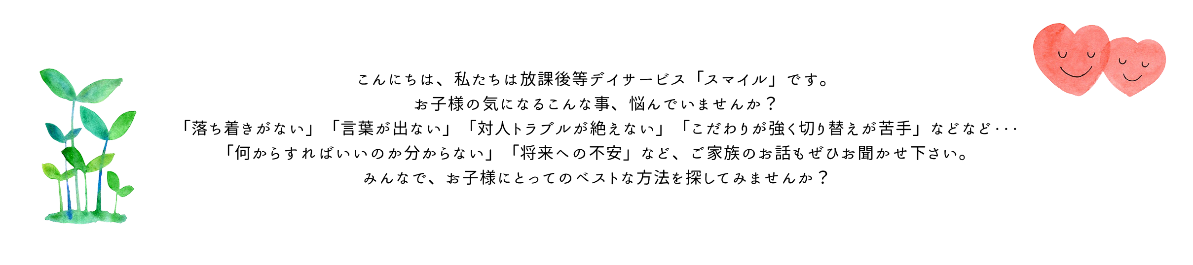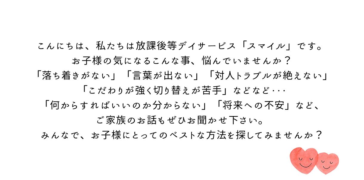 スマイルは、発達が気になる小学生から高校生のお子様を対象にした